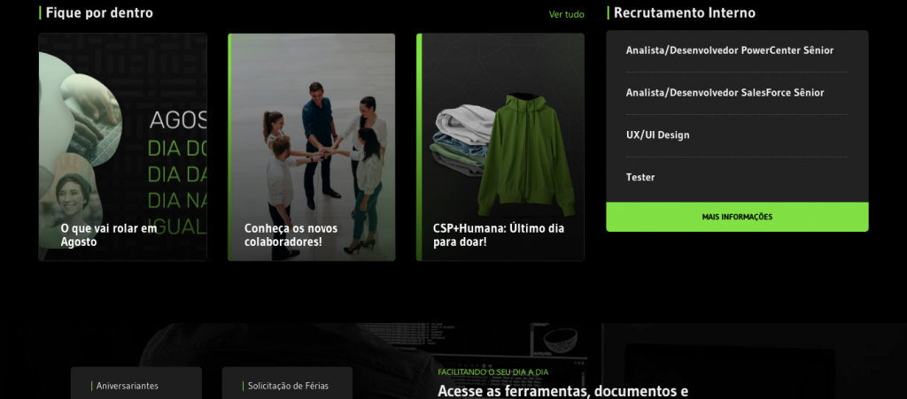 Pela nossa Intranet é possível para o colaborador saber de todas as nossas ações internas, tudo que está acontecendo e tudo que irá acontecer.