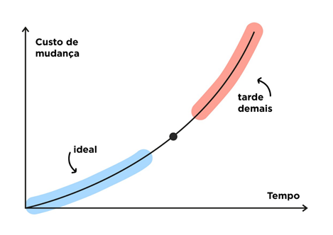 , “estima-se que seja 100 vezes mais barato fazer mudanças antes de escrever qualquer código, do que realizá-las após a implementação”.